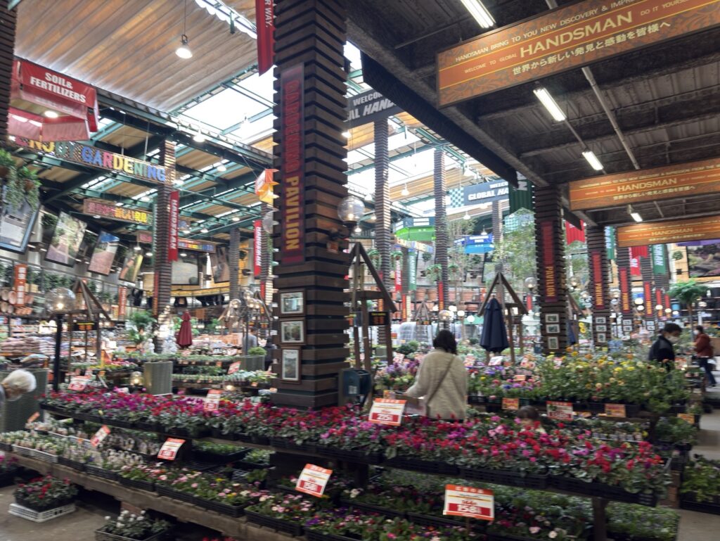 園芸コーナーもついついガーデニングしたくなるようなレイアウトで、多くのお客さんで溢れてました。